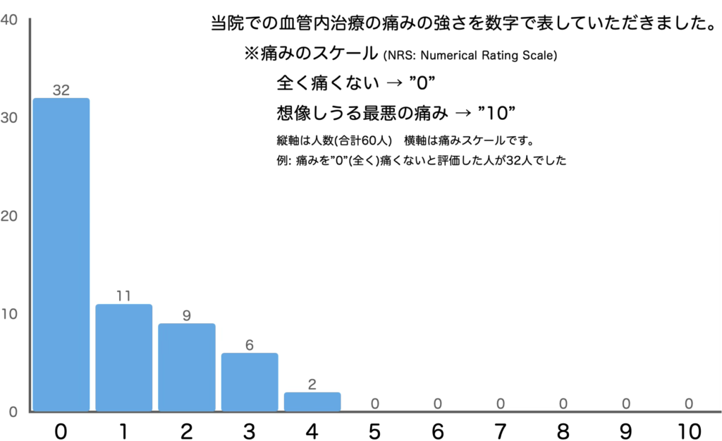 当院で血管内治療を受けた半数以上の方が「全く痛くない」と評価しました